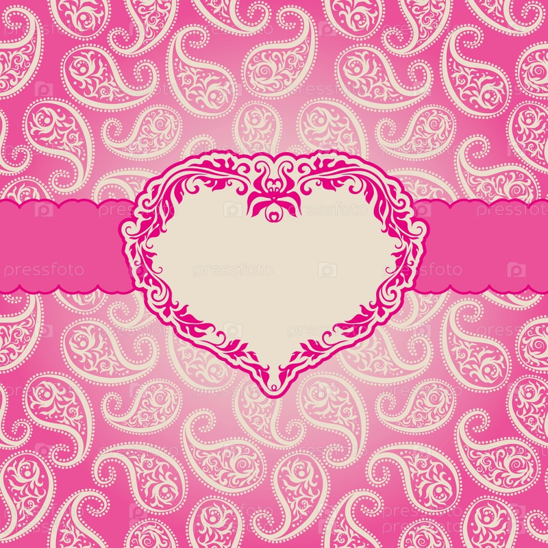 Бесшовный векторный шаблон. Красное сердце на розовом фоне
