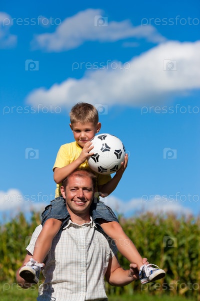 Отец с сыном отдыхают на природе