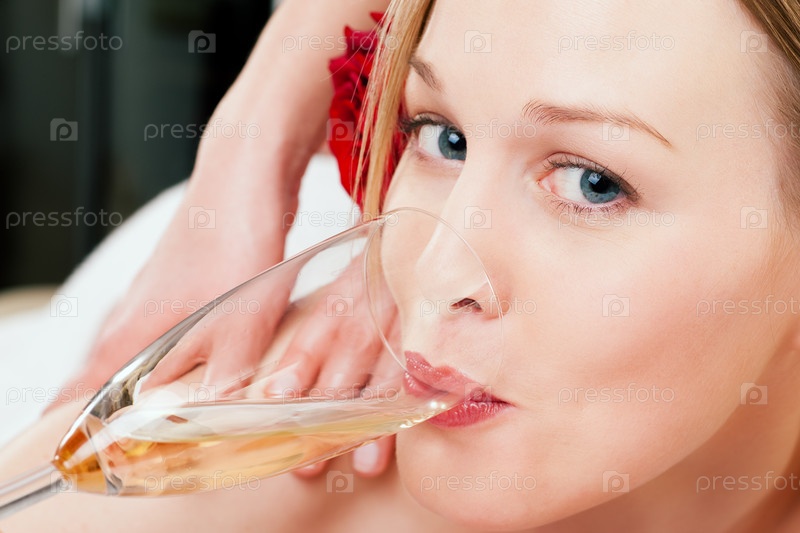 Женщина пьет вино на сеансе массажа