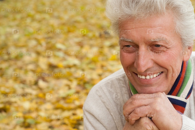 Красивый пожилой мужчина в осеннем парке