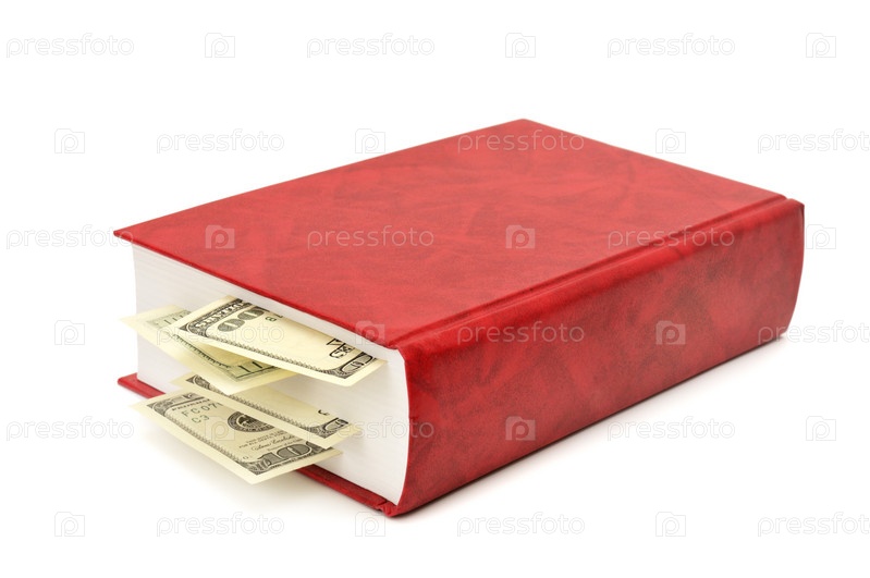 Доллары в книге, изолировано на белом