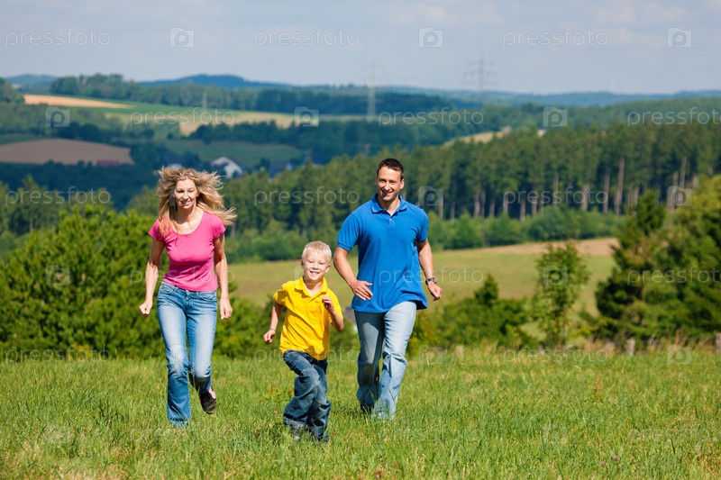 Счастливая семья летом на природе