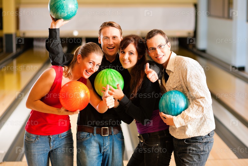 Группа друзей в боулинге