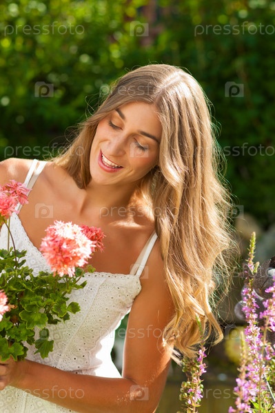 Девушка с цветами в саду