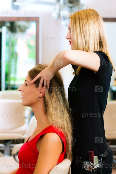 Парикмахер и клиент. Массаж головы