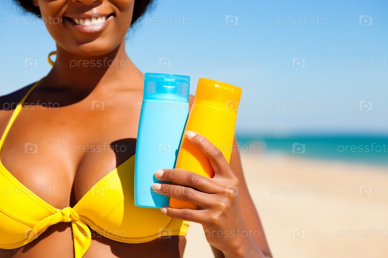 Средство для загара в руке у девушки
