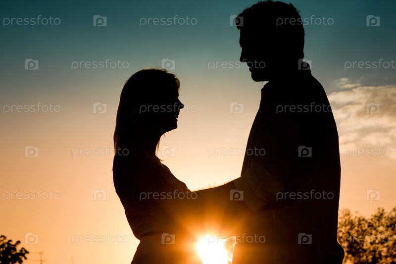 Пара влюбленных на фоне заката