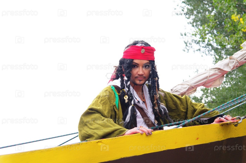Актер в образе Джека Воробья на корабле