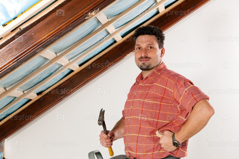 Рабочий стоит с молотком