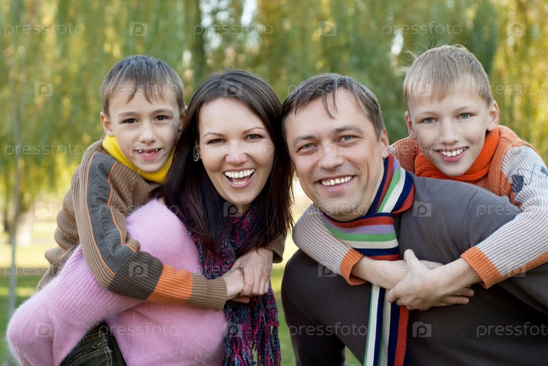 Портрет счастливой семьи на природе