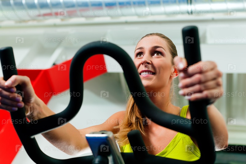 Девушка занимается на велотренажере