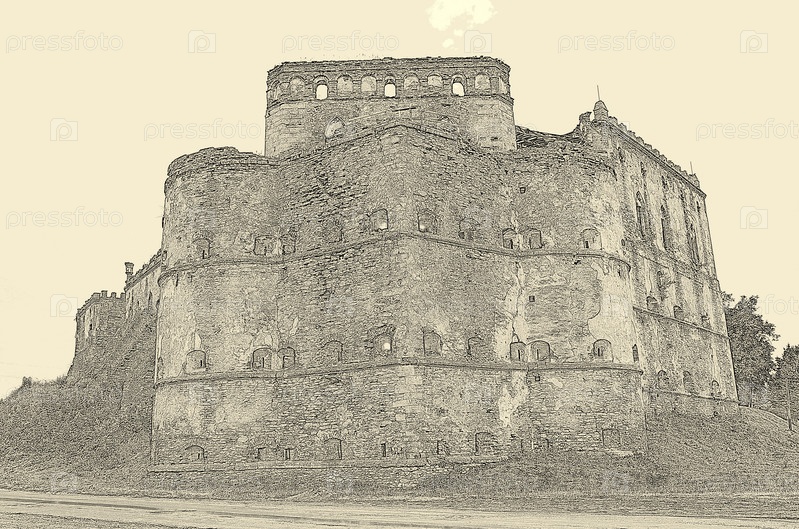 Изображение старой крепости в темно-серых тонах