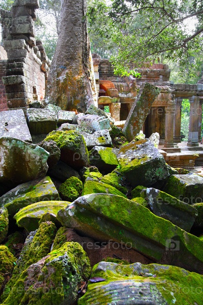 Мшистые развалины храма Та Прохм в Анкоре, Камбоджа