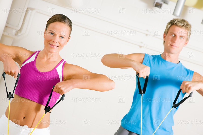 Девушка и парень делают занимаются фитнесом в спортзале