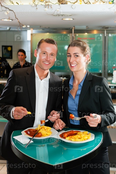 Деловые люди обедают в бистро