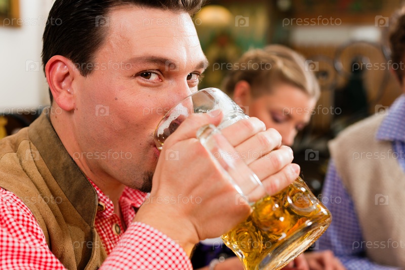 Компания друзей пьет пиво в баре