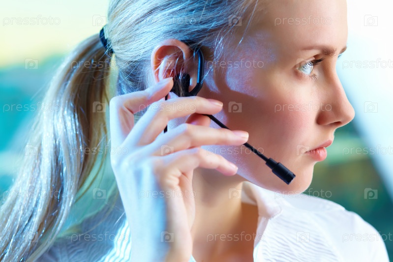 Представитель службы поддержки с гарнитурой