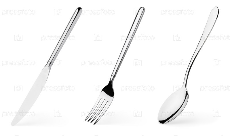 Нож, вилка и ложка на белом фоне