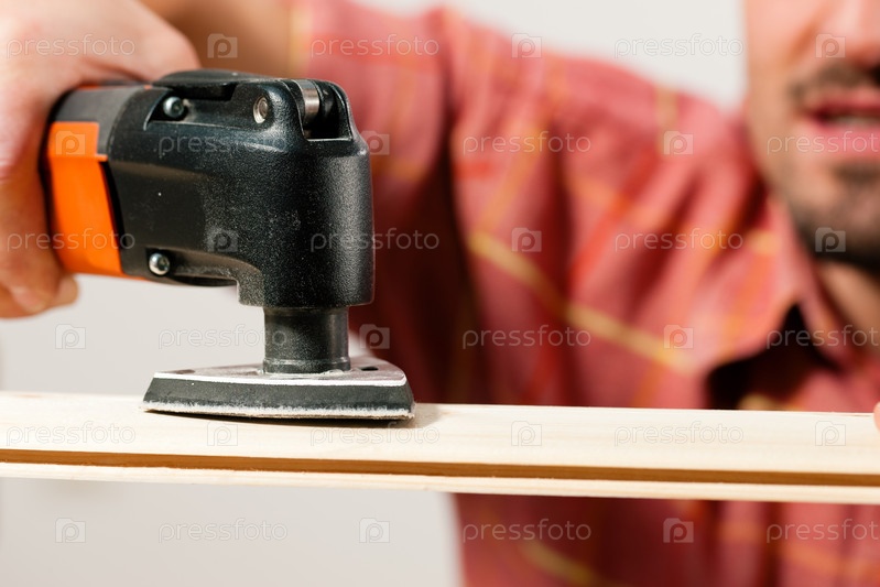 Рабочий с шлифовальной машинкой