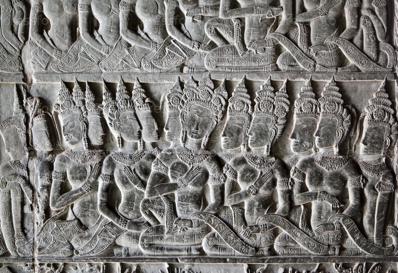 Кхмерская каменная резьба в храме Ангкор-Ват, Камбоджа