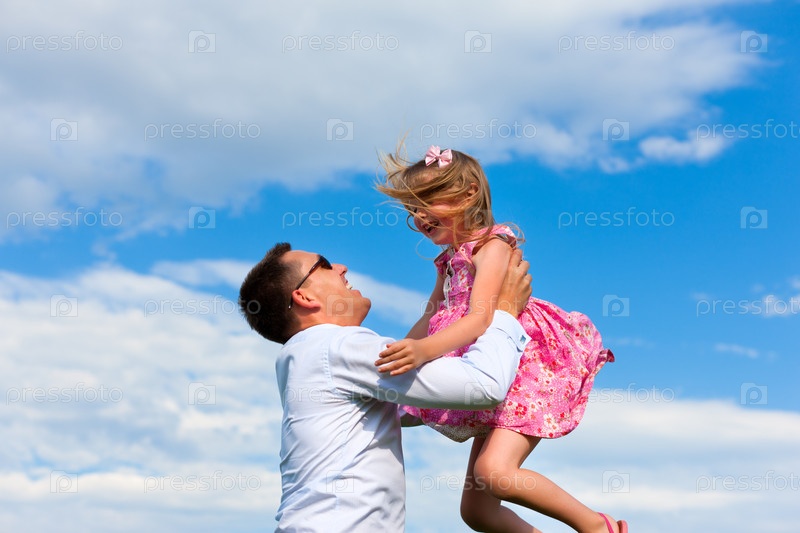 Папа с дочкой на фоне неба
