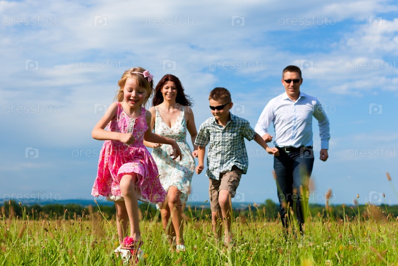 Семья на прогулке в летний день