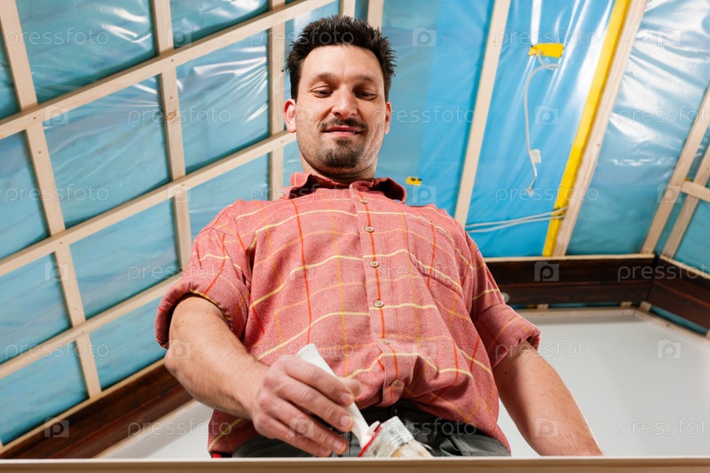 Мужчина занимается внутренней отделкой дом