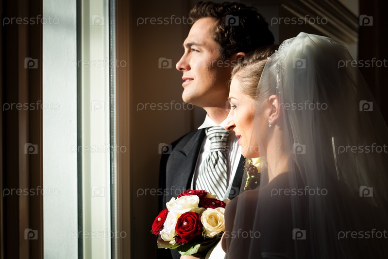 Жених и невеста смотрят в окно