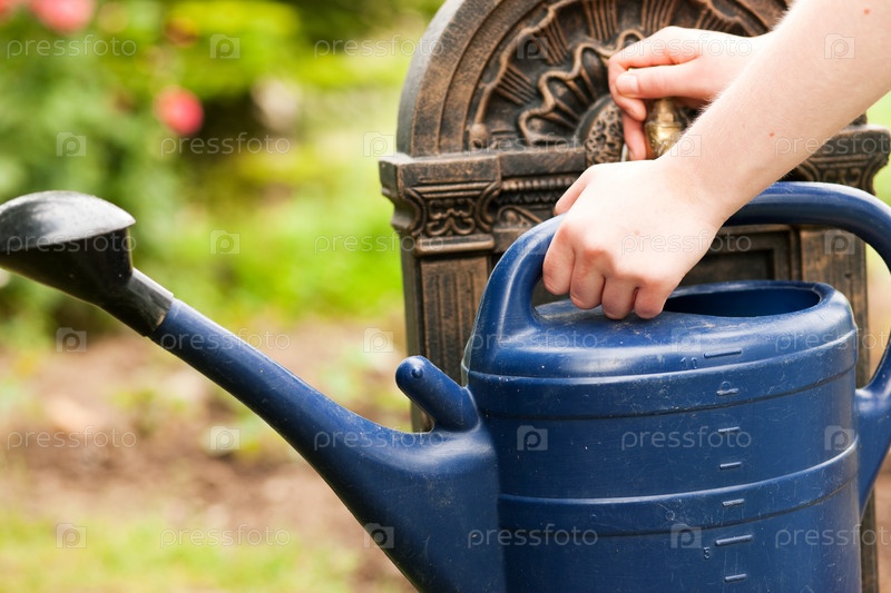 Девушка наливает воду в лейку