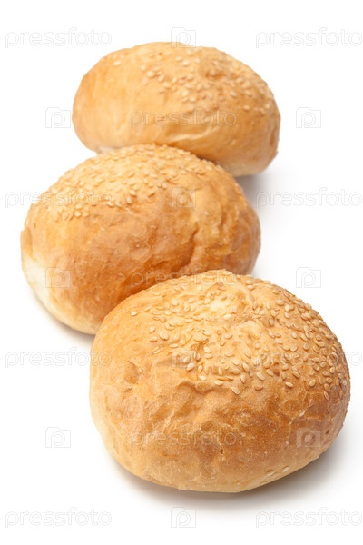Три свежие булочки на белом фоне
