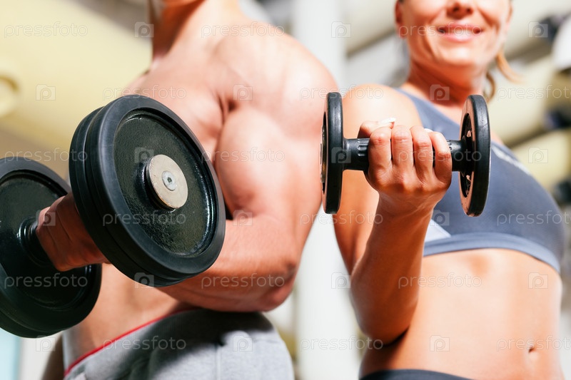 Спортсмены с гантелями в тренажерном зале