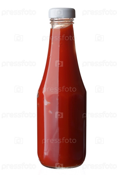 Полная бутылка кетчупа, изолированно на белом фоне