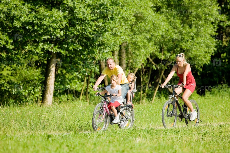 Семейная прогулка на велосипедах летним днем