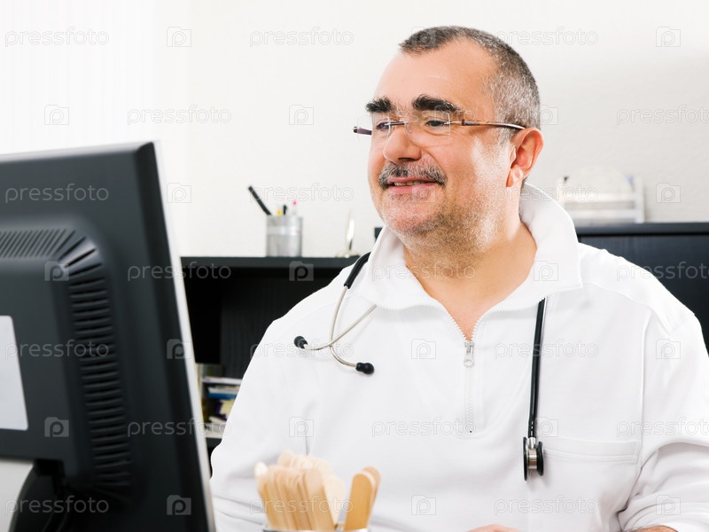 Мужчина-доктор, работающий на компьютере