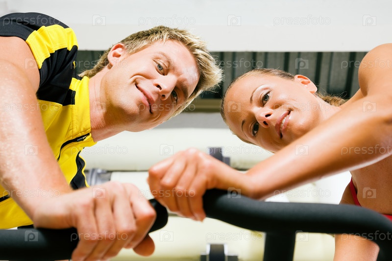 Пара молодых людей на тренажерах