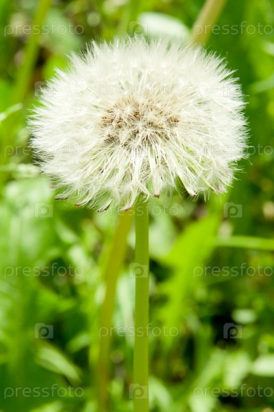 Белый одуванчик на зеленом фоне
