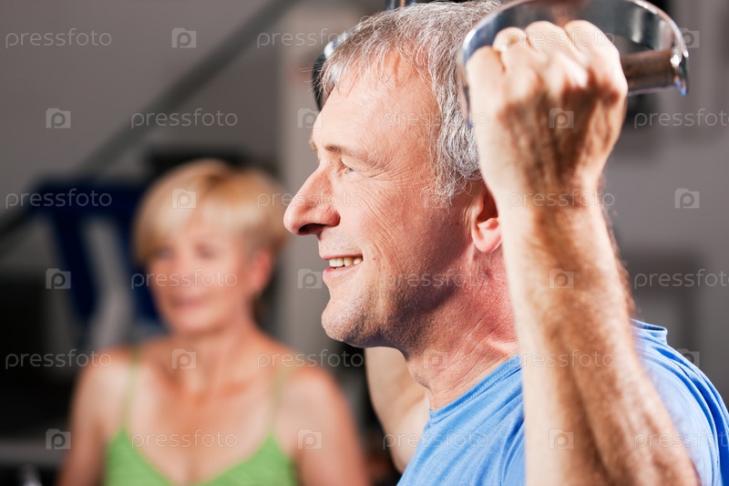 Пожилые люди на занятии в тренажерном зале