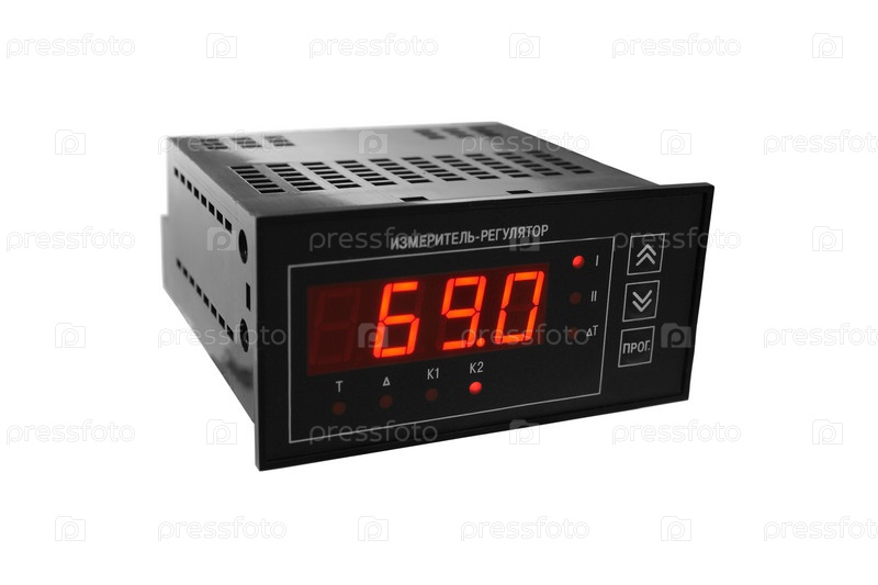 Счетчик-регулятор. Устройство для автоматических систем. Близкий план. Изолированный на белом фоне