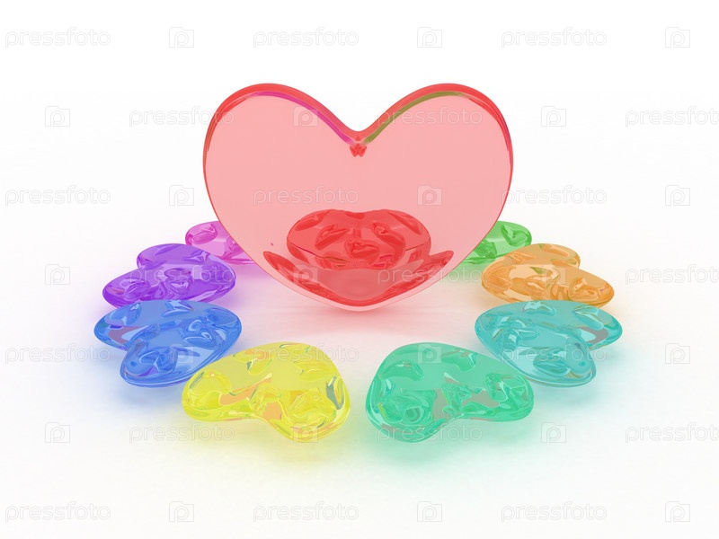 Разноцветные сердца, иллюстрация на белом фоне