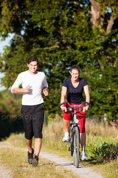 Атлет и велосипедист на утренней тренировке