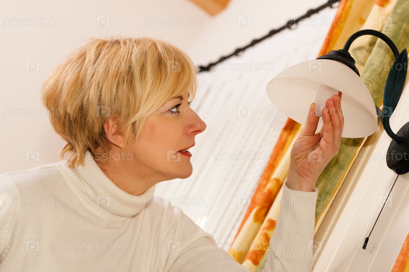 Женщина меняет лампочку