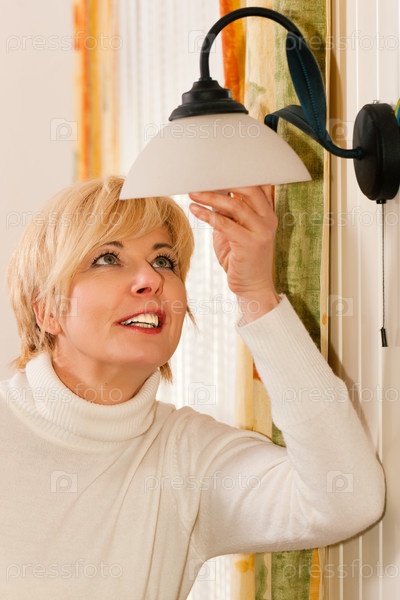 Женщина меняет лампочку