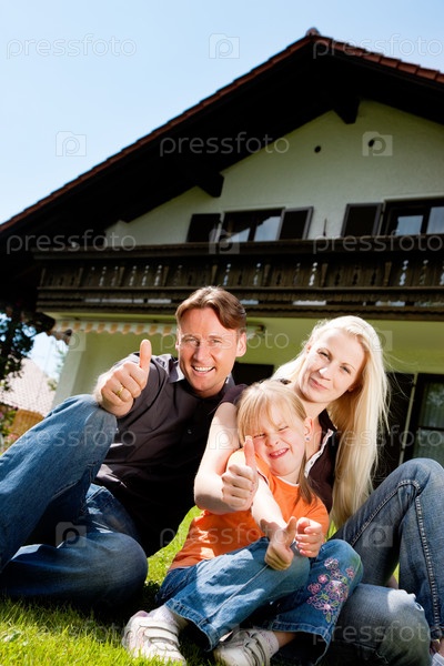 Счастливая семья на фоне загородного дома