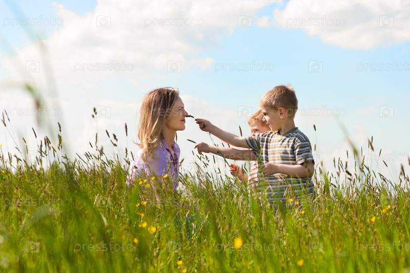 Мама с сыновьями на природе