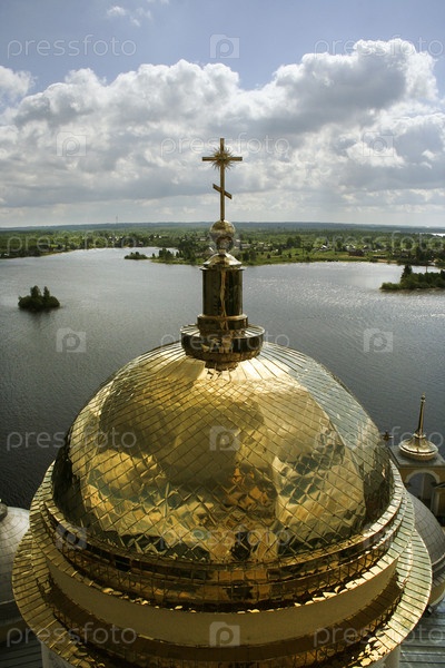 Церковный купол на фоне озера