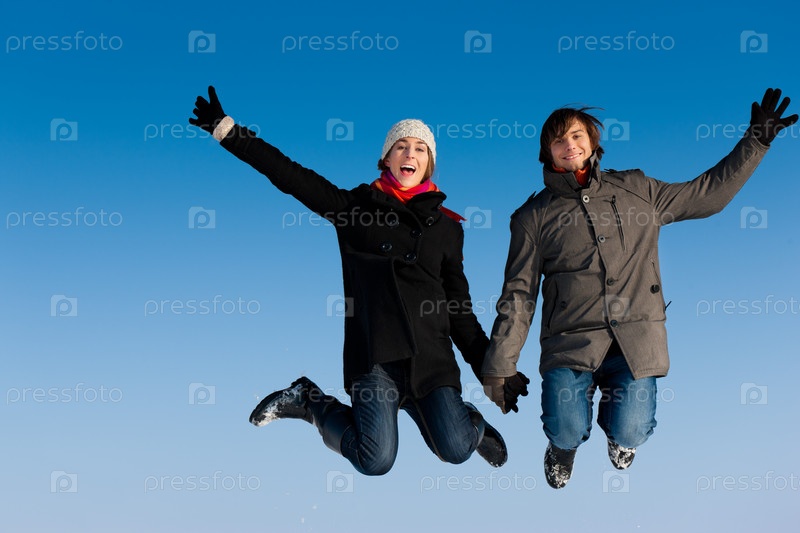 Молодые люди прыгают вверх
