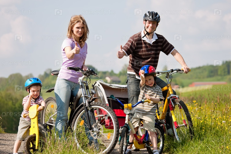 Родители и сыновья на велосипедах