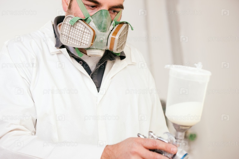 Прибор для распыления краски в руках у специалиста