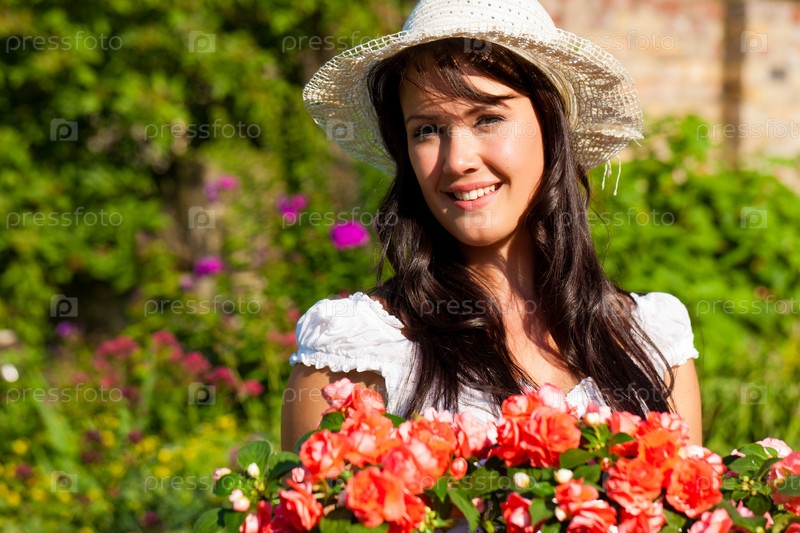 Красивая девушка около цветов