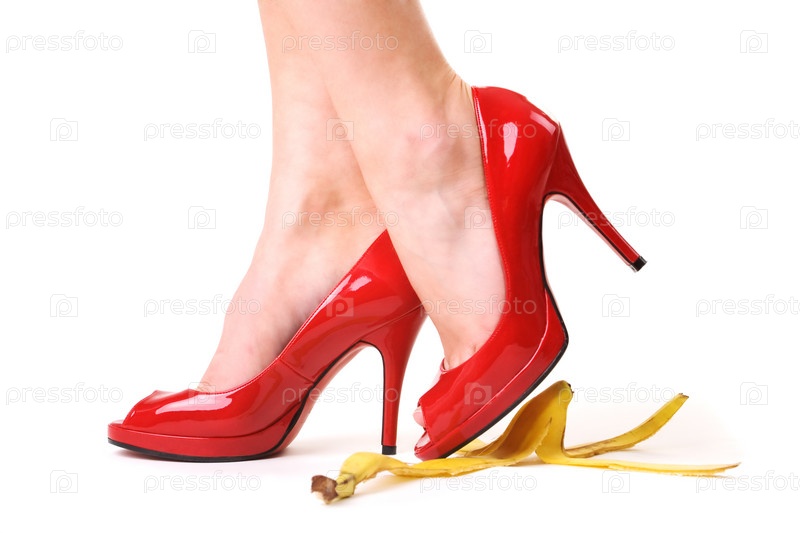 Банановая кожура и женская туфелька на ней